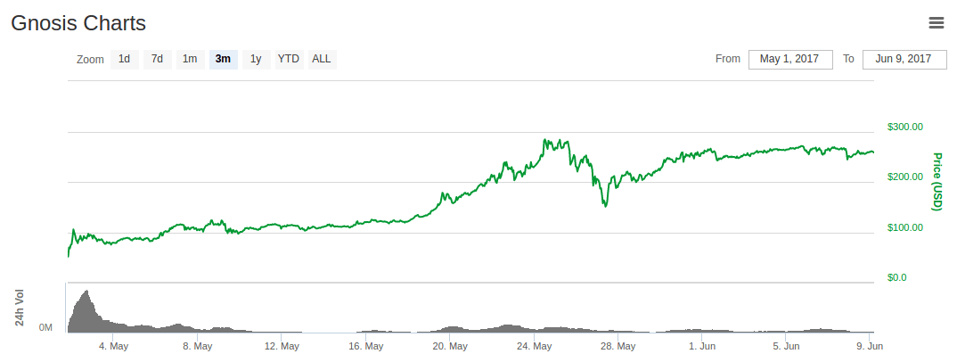 What happened? A couple of weeks before the sale started, facing public criticism that if they end up holding the majority of the coins they would act like a central bank with the ability to heavily manipulate GNO prices, the Gnosis team agreed to hold 90% of the coins that were not sold for a year. From a trader's point of view, coins that are locked up for a long time are coins that cannot affect the market, and so in a short term analysis, might as well not exist. This is what initially propped up Steem to such a high valuation last year in July, as well as Zcash in the very early moments when the price of each coin was over $1,000.