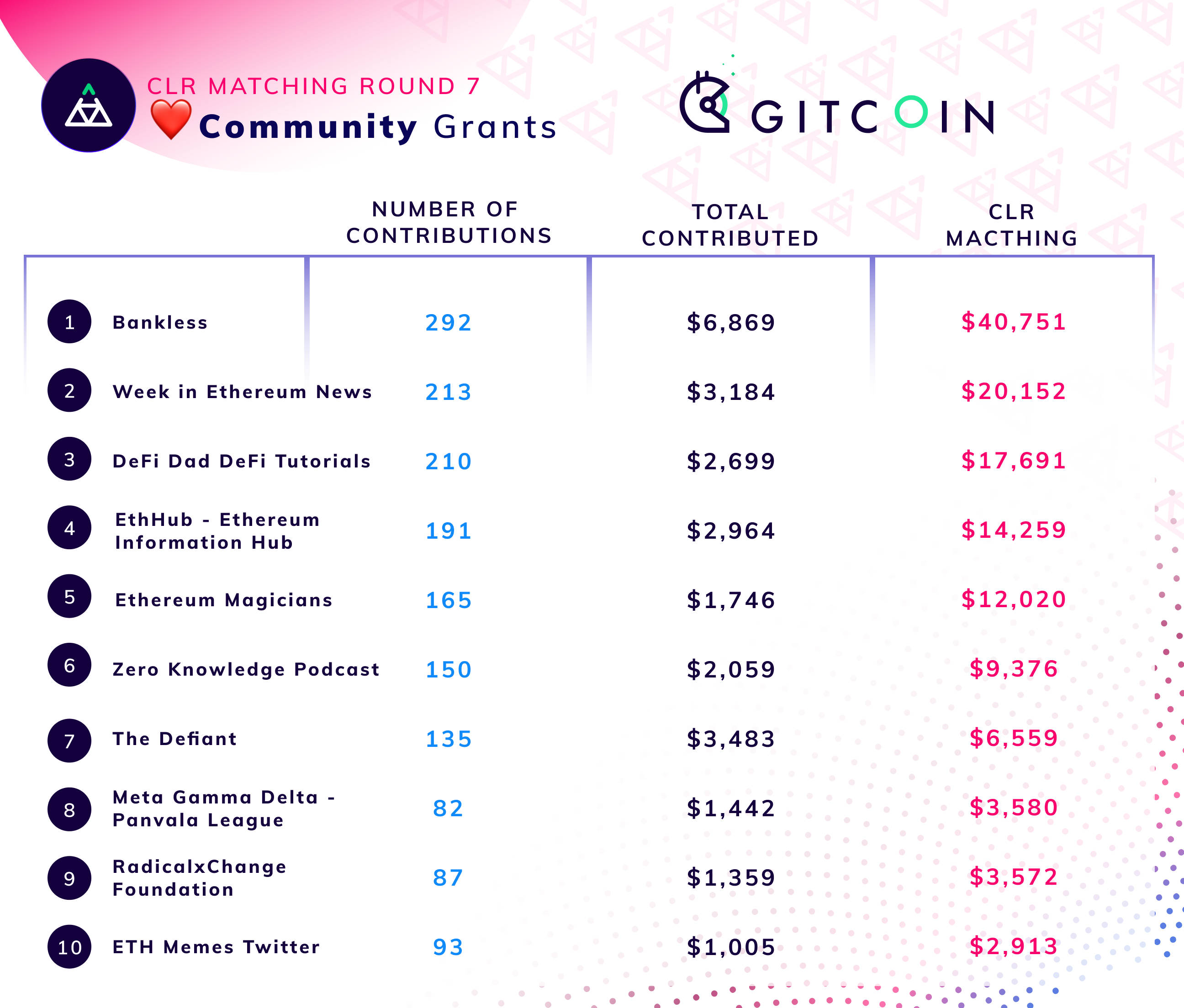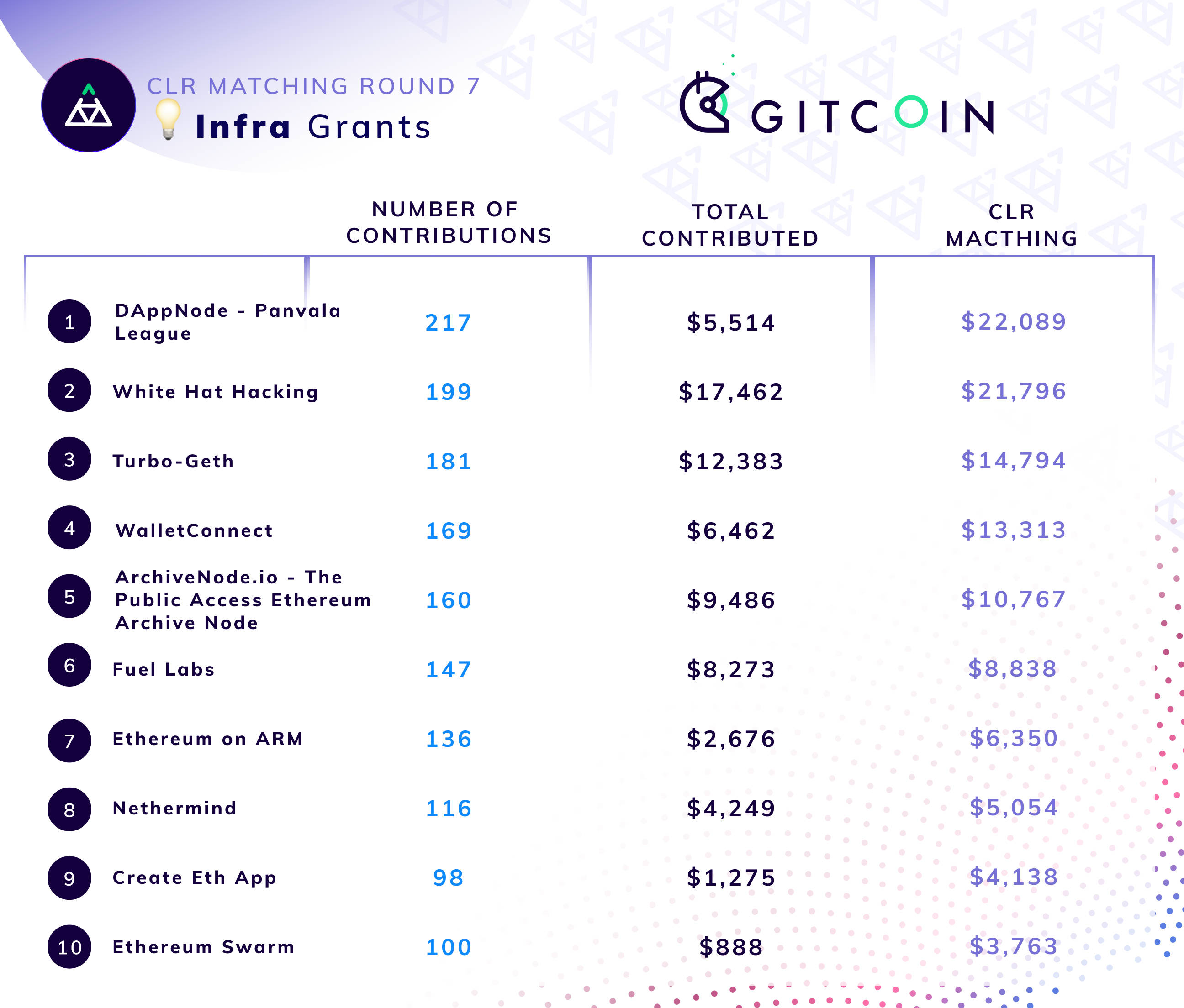 Examples of important public goods in the Ethereum ecosystem that were funded by the recent Gitcoin quadratic funding round. Open source software ecosystems, including blockchains, are hugely dependent on public goods.