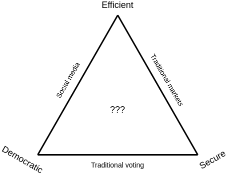 My answer is simple: voting would become much more efficient, allowing us to do it much more often. Currently, formal democratic input into organizations (governmental or corporate) tends to be limited to a single vote once every 1-6 years. This effectively means that each voter is only putting less than one bit of input into the system each year. Perhaps in large part as a result of this, decentralized decision-making in our society is heavily bifurcated into two extremes: pure democracy and pure markets. Democracy is either very inefficient (corporate and government votes) or very insecure (social media likes/retweets). Markets are far more technologically efficient and are much more secure than social media, but their fundamental economic logic makes them a poor fit for many kinds of decision problems, particularly having to do with public goods.