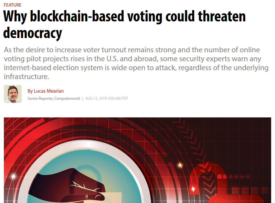 So at first glance, it seems that blockchains provide exactly what voting needs. And I'm far from the only person to have had that thought; plenty of major prospective users are interested. But as it turns out, some people have a very different opinion....