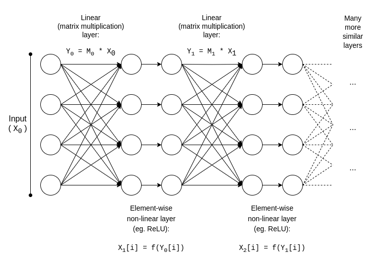 Fortunately, though, AI is a very specific type of computation, which makes it amenable to all kinds of optimizations that more "unstructured" types of computation like ZK-EVMs cannot benefit from. Let us examine the basic structure of an AI model: